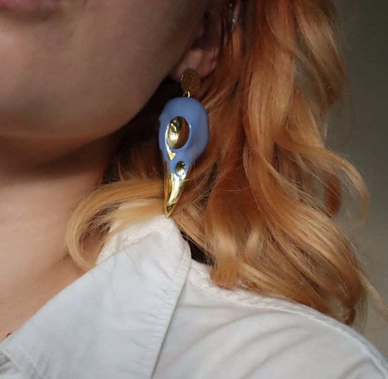 The Jackdaw earrings were born years ago, during my ceramic studies — a small, persistent idea that kept circling back, like a familiar bird watching from a nearby branch. What began as a design experiment slowly became my final project, then a limited batch for local markets. Years passed, shapes were refined, stories deepened. And now, they have found their true form — and their people.